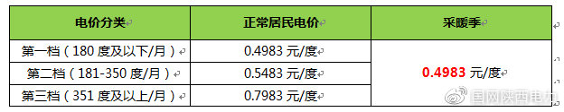 取消階梯優惠:在采暖期(當年11月1日至次年3月31日)內用戶的執行電價由階梯電價升級為僅執行居民階梯第一檔優惠電價0.4983元/度。